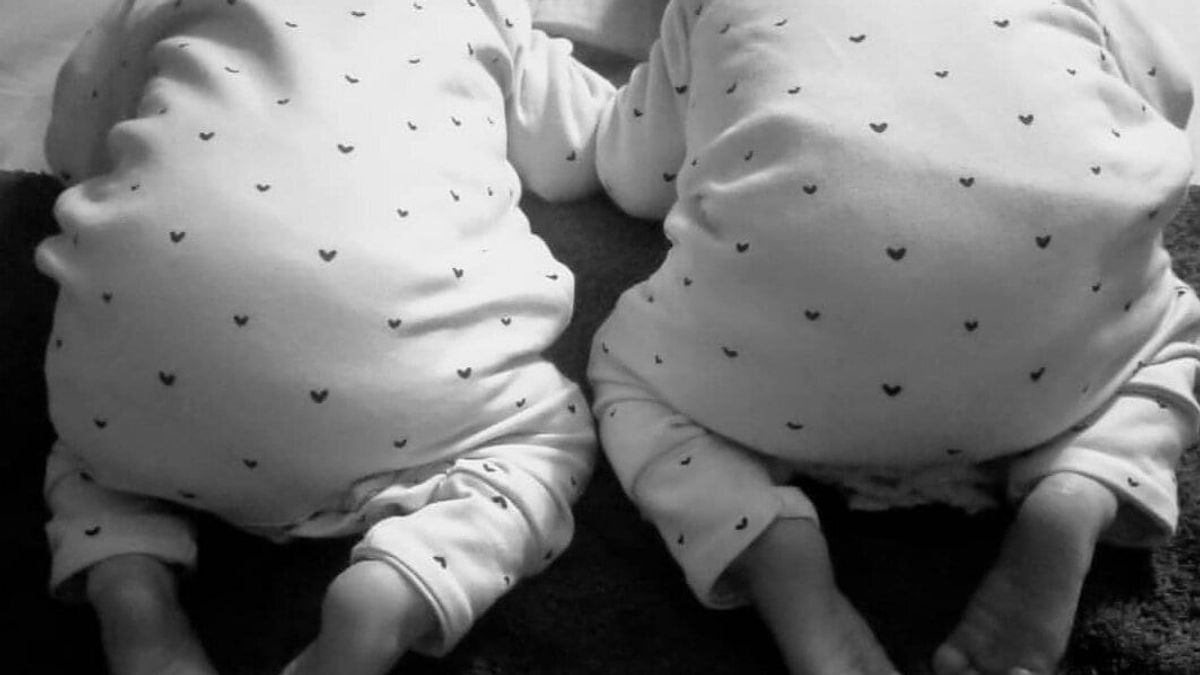 Durante ese tiempo, me divorcié. Perdí a nuestra hija a las 32 semanas de embarazo con mi esposo actual. Y el pasado junio, nuestras gemelas nacieron 10 semanas prematuras en una ciudad europea. Si hay algo importante con los bebés prematuros, ¡es el cuidado canguro! Pasamos días en una silla haciendo cuidado canguro con nuestras niñas. Y entonces dormían tan profundamente. Después de ocho largas semanas en el hospital, se les permitió ir a casa. Y después de dos días, sentí fuertemente que debía dejarlas dormir boca abajo. Estaba increíblemente asustada, porque aún no podían girar sus cabezas. Decidí primero probarlo durante el día en el corralito sobre un pañal de muselina enrollado. Mi esposo casi tuvo un ataque al corazón cuando llegó a casa y las vio acostadas allí. Inmediatamente las volteó. Pero seguí mi intuición y muy cuidadosamente las dejé dormir cada vez más boca abajo. Rápidamente notamos que dormían más tiempo boca abajo que boca arriba, y así mi esposo finalmente se convenció. Porque honestamente, dormir un poco uno mismo también es bastante agradable.